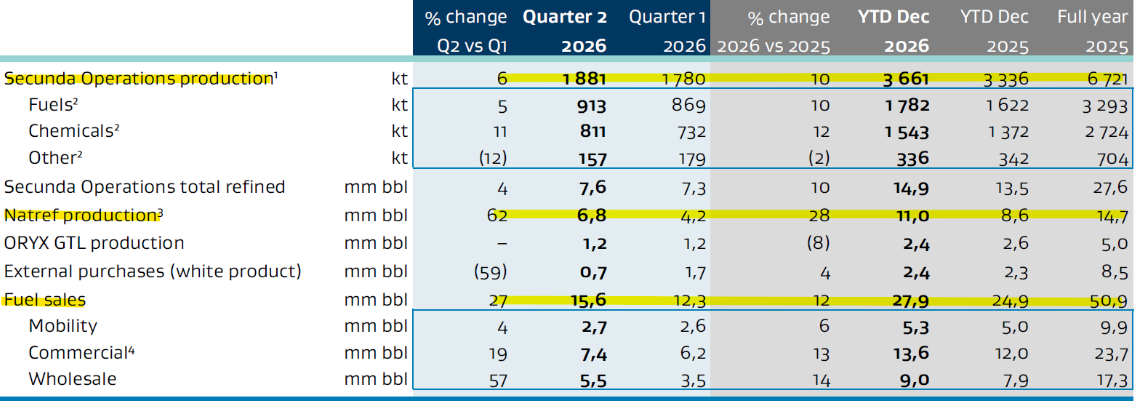 Secunda Operations production jumped 6% quarter-over-quarter, and for the first half of fiscal 2026, production ran 10% above last year.